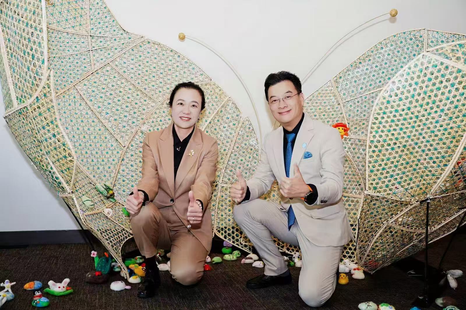 与展览共同呈现的,还有 “连接——非遗点亮未来”青少年公共艺术项目的呈现,这也是源于对联合国八十周年庆典所承载的和平愿景的深切回应。创作团队选择以中国非遗竹编技艺为语言,借蝴蝶这一跨越文化的蜕变与希望之象征,塑造一只正在舒展双翼的蝴蝶。它整体呈现出一种包容而开放的姿态,犹如轻轻怀抱观者,传递温暖与连接的视觉感受。孩子们亲手制作的毛毡艺术作品和手写的愿景卡片与竹编蝴蝶互相映衬,如散落的光点,承载着稚嫩却无穷的想象力与创造力。